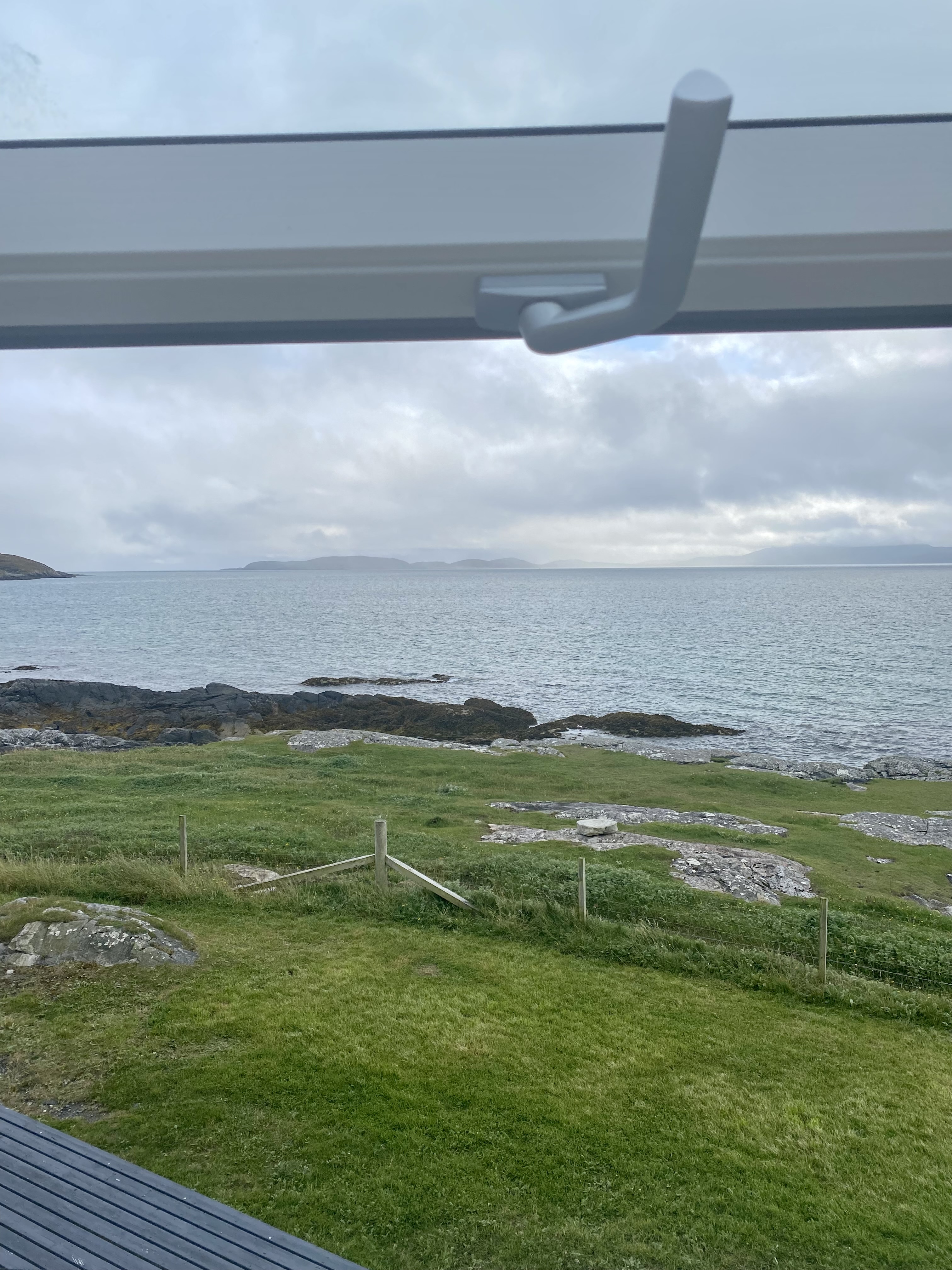 There is also a superb guest area with panoramic views of the sea and beaches. After climbing to the top of Ben Scrien, or walking the white sandy beaches of this pretty island you can sit back and relax with a warm drink or a long cold one and enjoy the world just passing by.